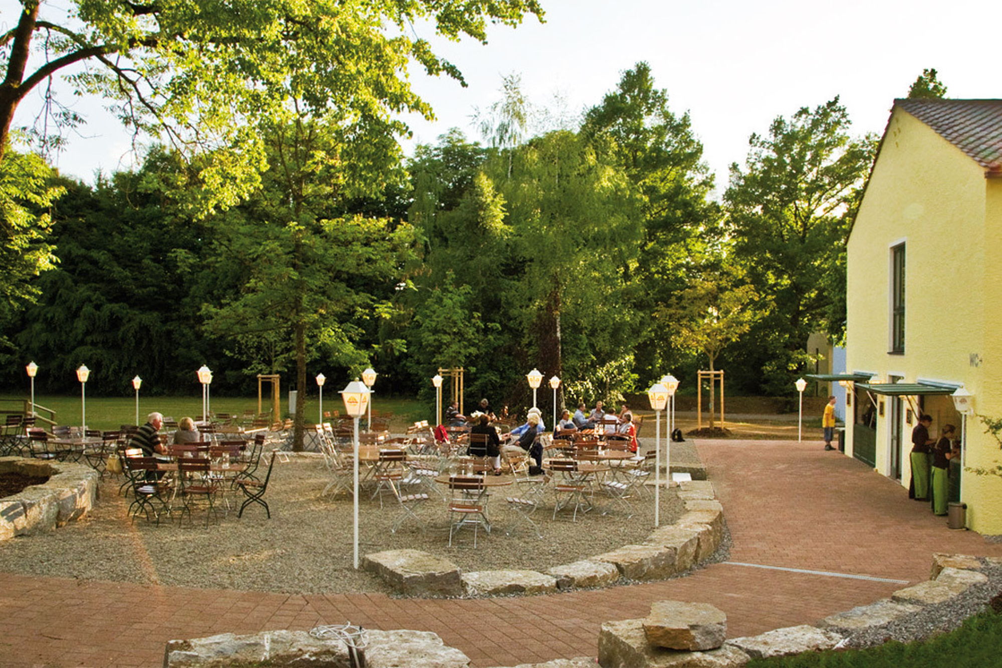 - Idyllische Atmosphäre, mitten im Berger’s Park, umgeben von weitläufigen Grünflächen und Bäumen.